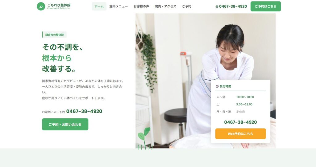 整体院サンプル|ナチュラル・清潔系(5ページ)